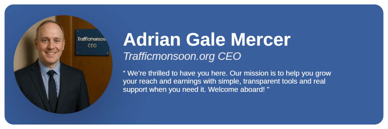 Users of Trafficmonsoon platform are provided with wide opportunities to earn money by viewing ads, buying packages, attracting other users, etc. Start earning today.